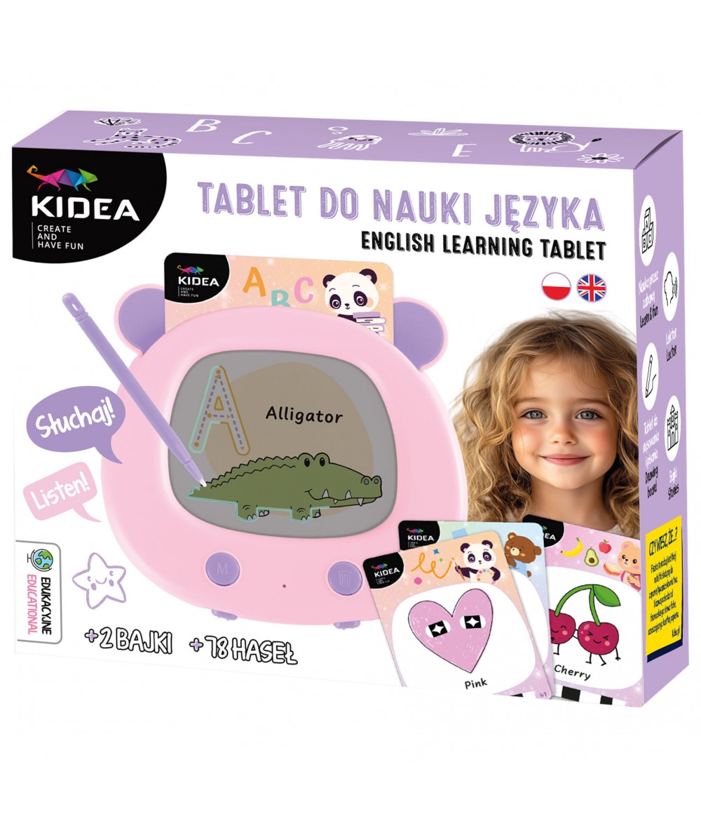 Tablet do nauki JĘZYKA ANGIELSKIEGO różowy A Kidea | lektor, 78 haseł