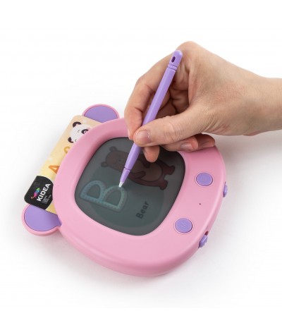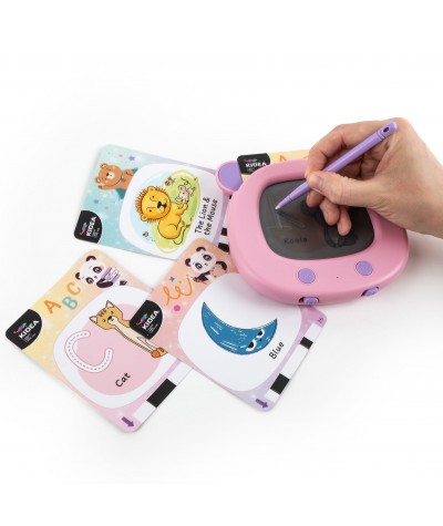 Do zestawu dołączone są dwustronne karty z dużymi, barwnymi ilustracjami. Obrazki pomagają dziecku samodzielnie kojarzyć znaczenia słów, dzięki czemu nauka zamienia się w zabawę pełną odkryć. Sam tablet ma dodatkową funkcję - powierzchnię do rysowania. W komplecie znajduje się rysik, który pozwala trenować pierwsze litery, szkicować lub po prostu tworzyć to, na co akurat dziecko ma ochotę.