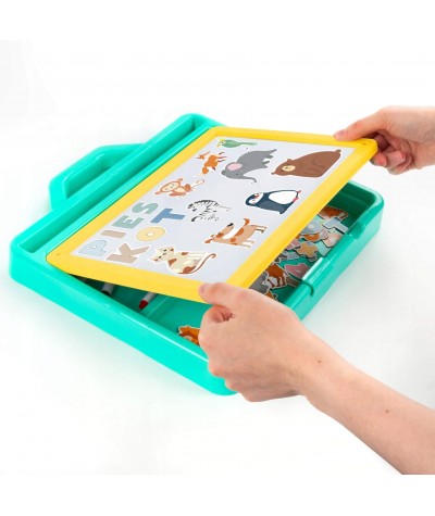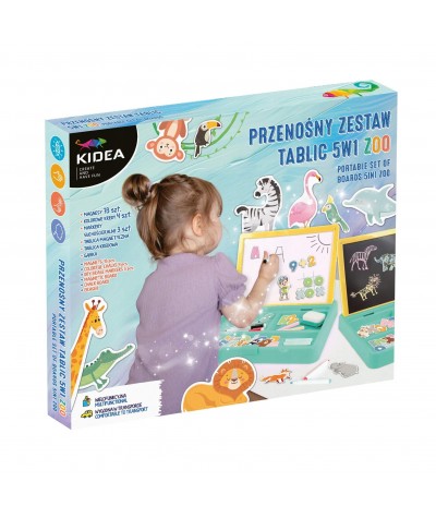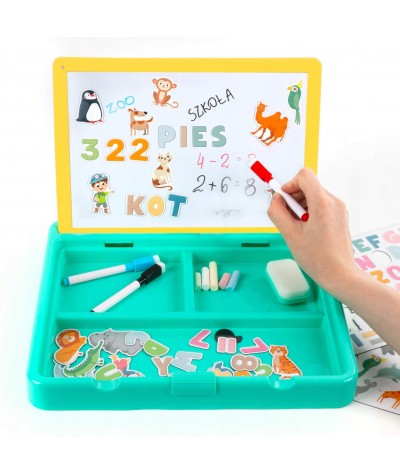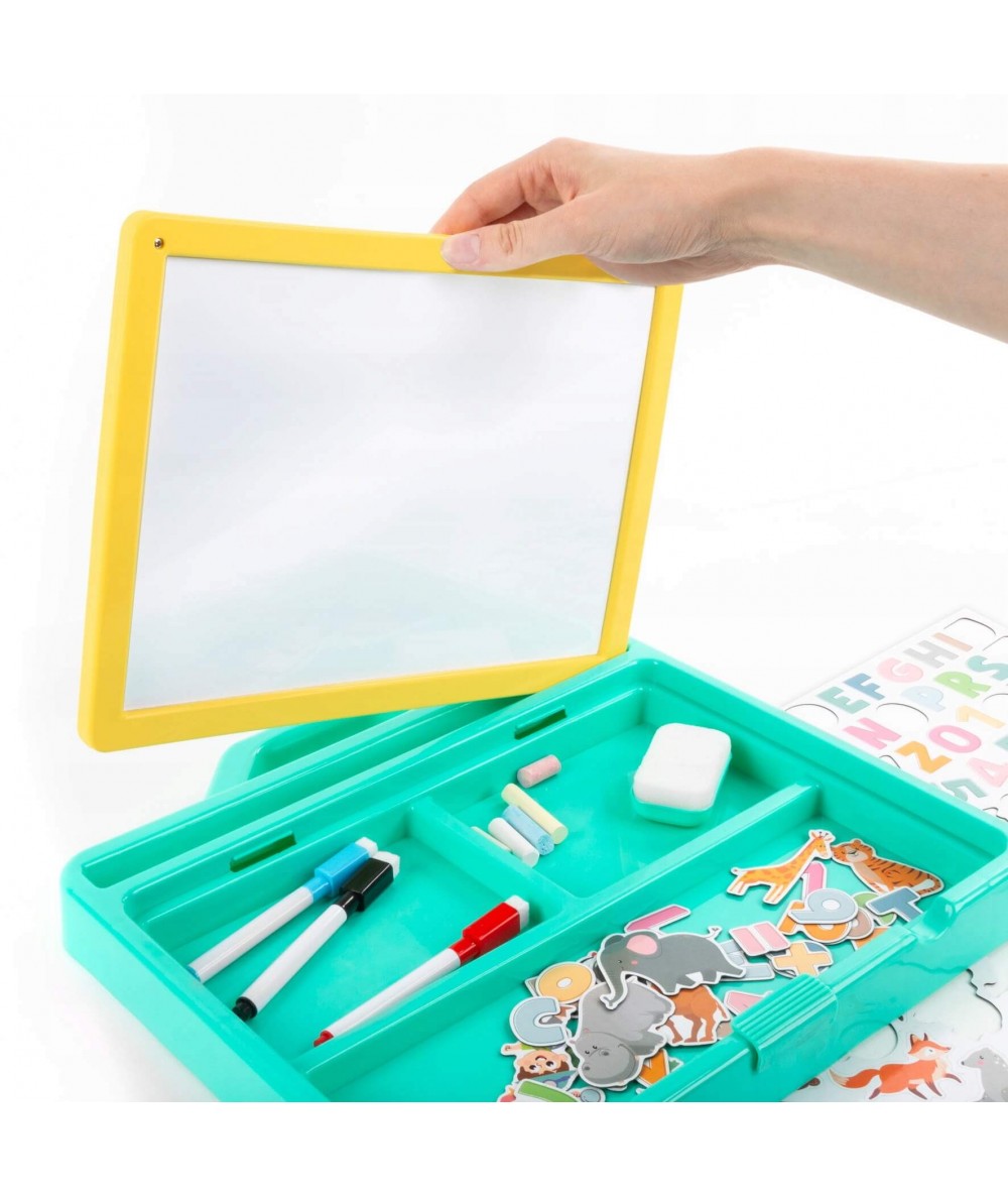 Rewelacyjny pomył na prezent dla każdego dziecka! Kilka rodzajów tablic w jednej! Do rysowania markerami, kredą, jak i do przymocowania magnesów. Do tego schowek na inne elementy zestawu, tworzą znakomitą całość - idealna dla każdego dziecka.