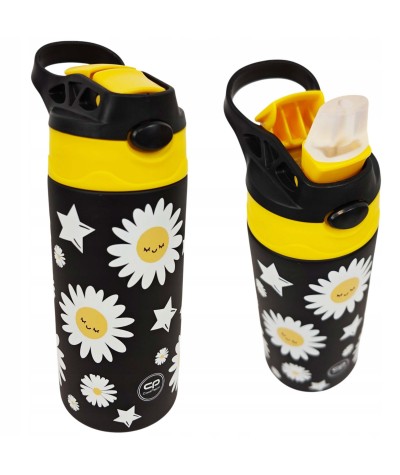 Bidon metalowy - Termos BONO CoolPack 350ml - BLACK DAISY w stokrotki