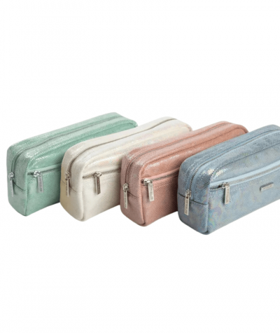 Zachwycający piórnik ARGUS w jasnym, zielonym kolorze z opalizującym wykończeniem, które mieni się w świetle niczym powierzchnia muszli. Holograficzny połysk nadaje mu wyjątkowego charakteru, sprawiając, że każdy detal przyciąga wzrok. Kompaktowy, ale pojemny – idealny na przybory szkolne, kosmetyki czy drobiazgi codziennego użytku. Zamki błyskawiczne z metalowymi suwakami zapewniają trwałość i wygodę użytkowania.