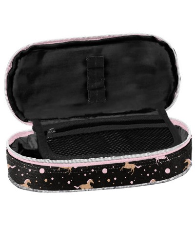 Piórnik z klapką szkolny KONIE czarny PASO dziewczęcy w konie