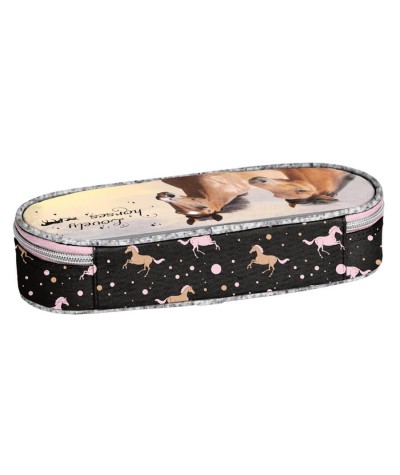 Poczuj wolność z piórnikiem ozdobionym galopującymi końmi! Dla pasjonatów jeździectwa i natury – to propozycja pełna wdzięku i elegancji. Przestronne wnętrze i mocny zamek to gwarancja wygody. Idealny wybór dla marzycieli i miłośników zwierząt.