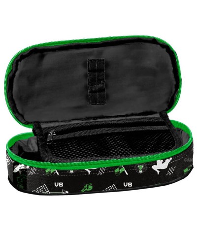 - Piórnik młodzieżowy -013 - szkolny piórnik saszetka z organizerem w postaci klapki z gumkami do mocowania i kieszenią z siatki. Usztywniane ścianki zabezpieczają przybory przed uszkodzeniem. Duży wybór modnych wzorów.