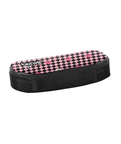 Piórnik z klapką szkolny SZACHOWNICA różowo-czarna w kwiatki PASO BeUniq