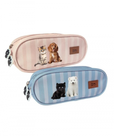 Piórnik saszetka podwójna z kotkiem i pieskiem Interdruk Puppy Sign niebieski