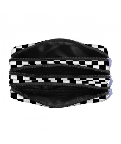 Piórnik saszetka trzykomorowa SZACHOWNICA CZARNO-BIAŁY BackUP G94F z fioletowymi zamkami