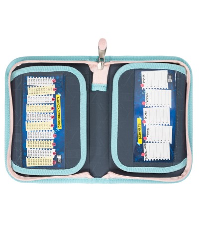 - PC03 - rozkładany piórnik jednokomorowy polecany uczniom w klasach 1-3. Wewnątrz znajdują się gumki do mocowania przyborów oraz dwie ruchome klapki z miejscem na plan lekcji, zdjęcia i karteczki.