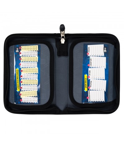 - PC03 - rozkładany piórnik jednokomorowy polecany uczniom w klasach 1-3. Wewnątrz znajdują się gumki do mocowania przyborów oraz dwie ruchome klapki z miejscem na plan lekcji, zdjęcia i karteczki.