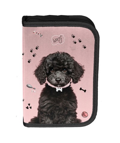 Uroczy różowy piórnik z czarnym pudelkiem to idealny wybór dla małych miłośników czworonogów. Delikatna kolorystyka i zabawny nadruk przyciągają uwagę i wywołują uśmiech. Rozkładana forma zapewnia mnóstwo miejsca na kredki, mazaki i inne drobiazgi. Dzięki dobrze zaprojektowanemu wnętrzu wszystko jest zawsze na swoim miejscu. Trwały materiał czyni go idealnym towarzyszem do szkoły.