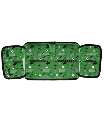 Wymarzony dodatek dla każdego małego piłkarza. Sportowy nadruk z piłką i boiskiem motywuje do działania – nie tylko na boisku, ale i przy szkolnej ławce. Pojemne wnętrze pomieści wszystkie niezbędne przybory. Dzięki rozkładanej konstrukcji każde dziecko może łatwo utrzymać porządek. Wytrzymały materiał sprawia, że piórnik świetnie znosi codzienne użytkowanie.