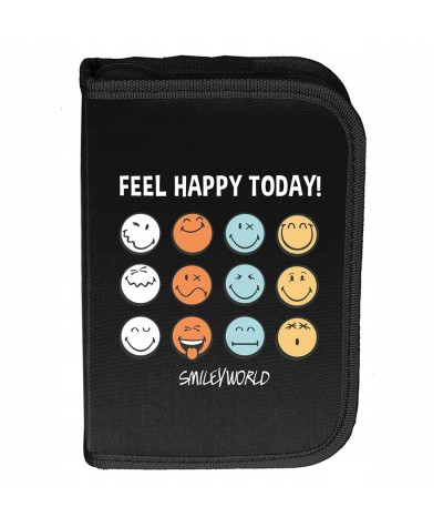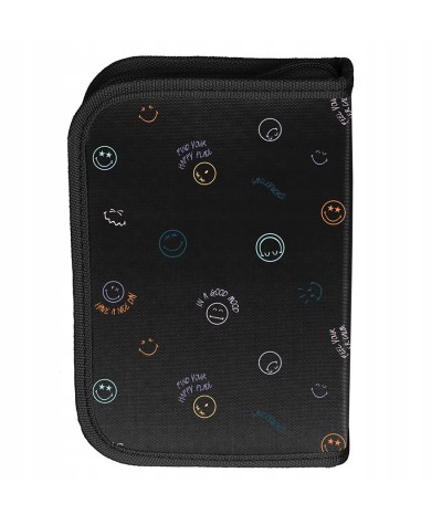Piórnik rozkładany bez wyposażenia SMILEY WORLD PASO czarny w kolorowe emotki