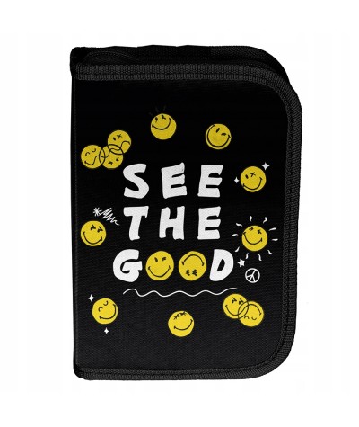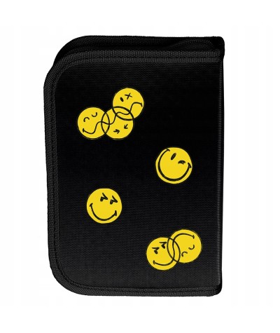 Piórnik w emotki rozkładany bez wyposażenia CZARNY ŻÓŁTY SMILEY WORLD PASO dziecięcy