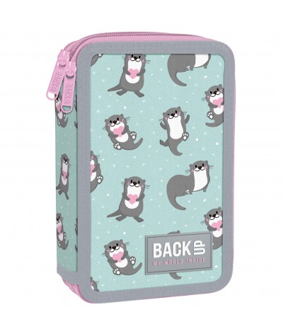 Piórnik 2 komory z wyposażeniem urocze WYDRY BackUP DW12 miętowy
