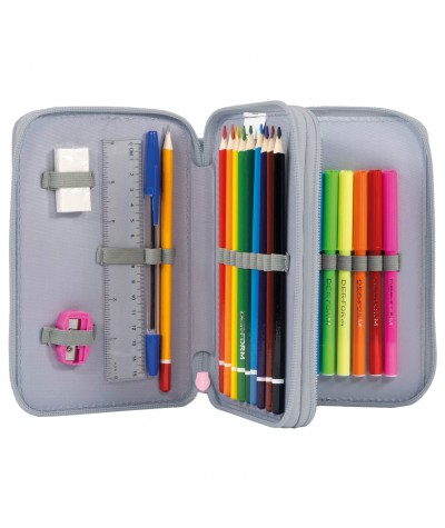 Funkcjonalny i kompaktowy piórnik z pełnym wyposażeniem! Wzór stworzony dla dziewczynek uwielbiających urocze zwierzątka na akcesoriach szkolnych - tym razem proponujemy słodkie jeżyki z najnowszej kolekcji BackUP. Gumeczki mocujące, które znajdują się wewnątrz dwukomorowego piórnika pozwalają na zachowanie porządku i estetycznego wyglądu. Postaw na szary piórnik wysokiej jakości od BackUP!
