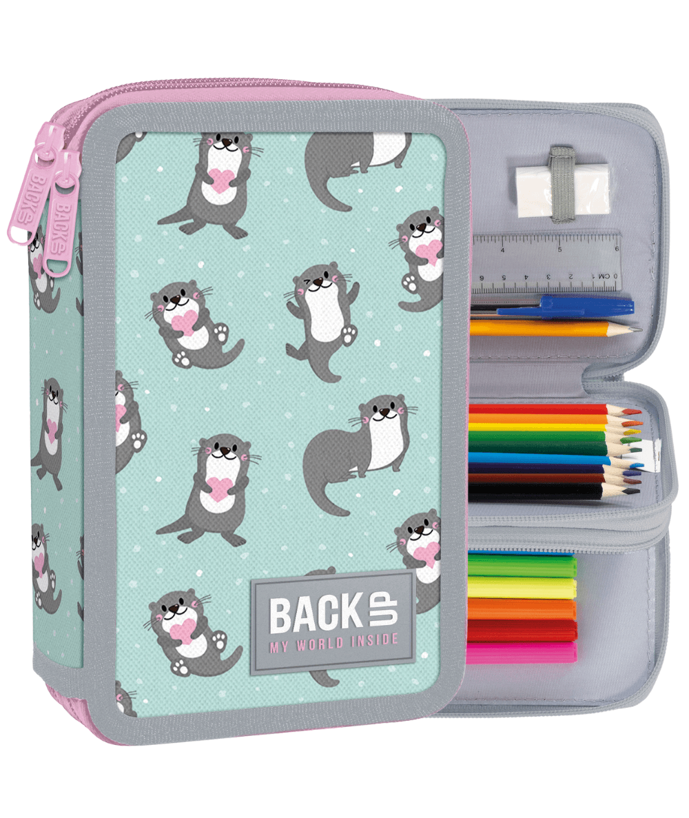 - BackUP piórnik DW - dwukomorowy piórnik z wyposażeniem rozkładany dla dzieci.