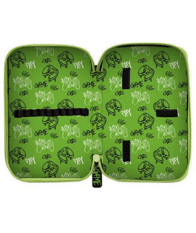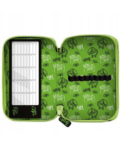 Piórnik z padem dwukomorowy bez wyposażenia GAME PASO czarny zielony