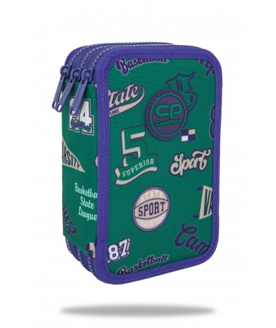 Piórnik trzykomorowy z wyposażeniem CoolPack JUMPER 3 AMERICAN RETRO koszykarski zielony 46 elem.