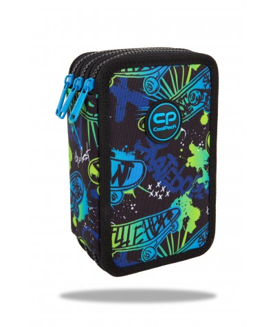 Zielono-niebieski piórnik na 3 zamki z motywem DESKOROLKI - nowa kolekcja SKATE NIGHT od CoolPacka.