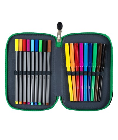 Piórnik trzykomorowy z wyposażeniem ST.RIGHT GREEN GAME PC05 zielony czarny w PIKSELE