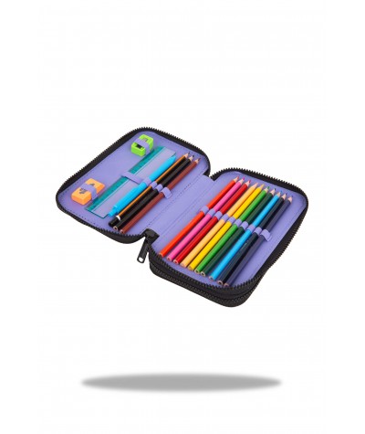 Praktyczny, dwukomorowy piórnik z wyposażeniem - zawiera 35 niezbędnych akcesoriów szkolnych, takich jak kredki, flamastry i długopisy. Rozkładana konstrukcja zapewnia łatwy dostęp do przyborów i ich dobrą organizację. Postaw na jakość COOLPACK!