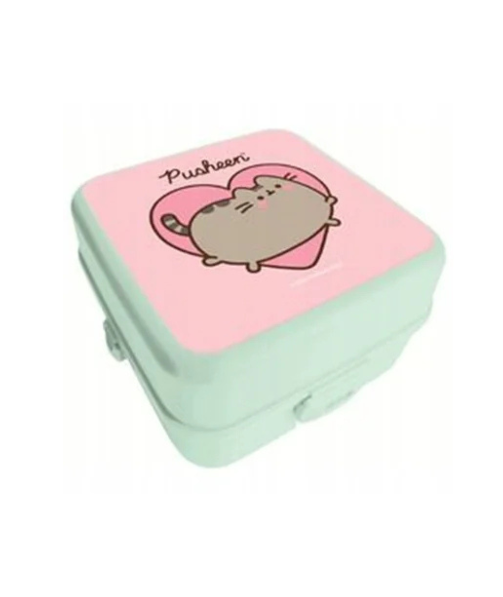 Urocza śniadaniówka z motywem kotka Pusheen, w modnej miętowo-różowej kolorystyce. Wyposażona w przegródki, które pozwalają oddzielić różne produkty, dzięki czemu posiłek pozostaje świeży i apetyczny. Pojemnik wykonany jest z bezpiecznego materiału BPA FREE i posiada podwójne zamykanie, które chroni zawartość przed przypadkowym otwarciem. Idealna do szkoły, czy na wycieczkę.