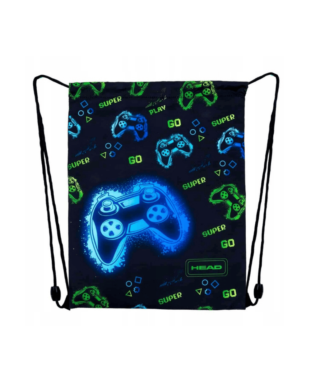 Gamingowy worek sportowy dla chłopców w neonowe pady do gry. Idealny dla każdego miłośnika gier komputerowych - niezależnie od wieku sprawdzi się na wf, czy inne zajęcia sportowe.
