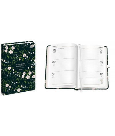 Kalendarz nauczyciela 2025/2026 INTERDRUK czarny w kwiatki | A5 z okładką soft touch