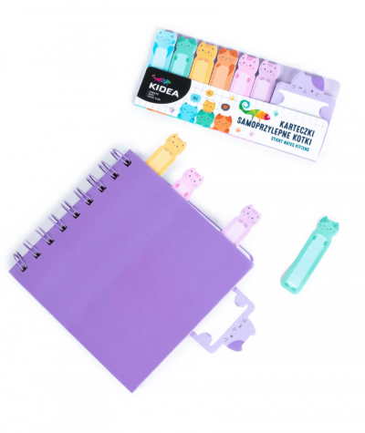 Karteczki samoprzylepne KIDEA indeksujące KOTKI A 7 bloczków pastelowe