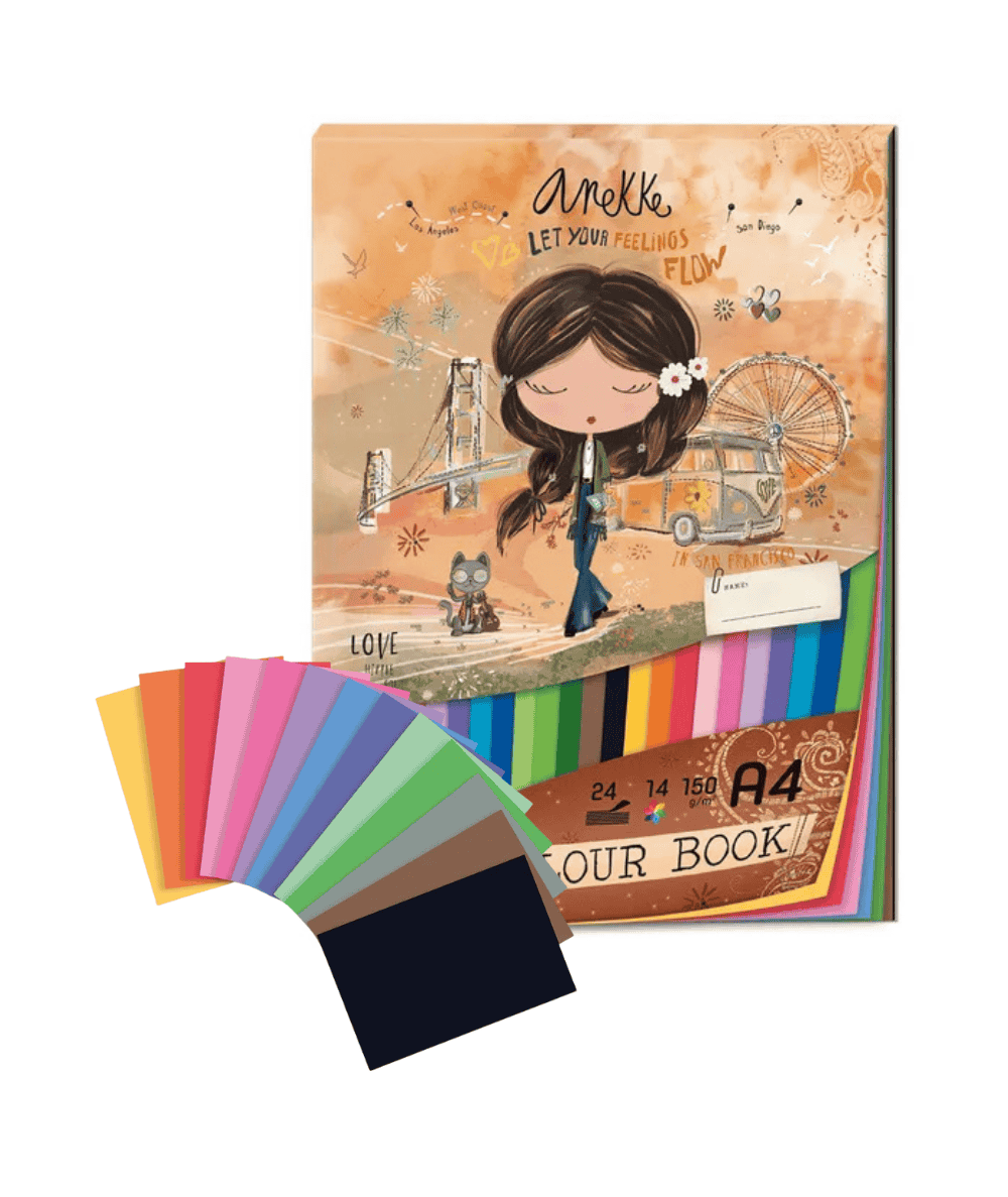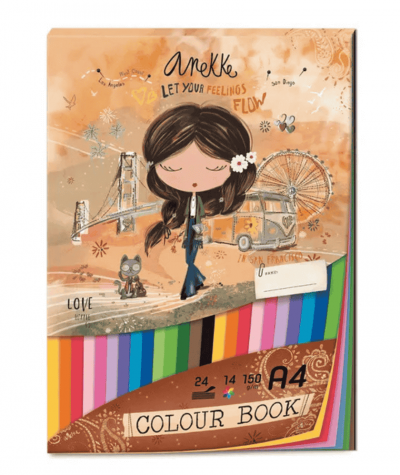 Blok kolorowy ANEKKE A4 150g techniczny 24 arkusze 14 kolorów Love to share