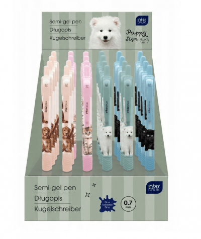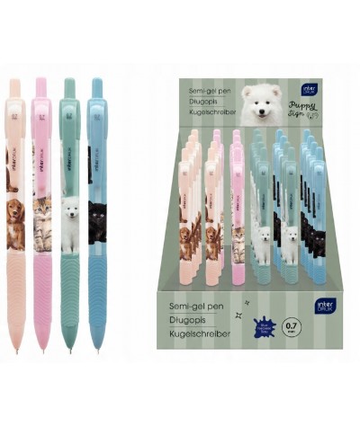 Długopis z gripem dziecięcy z kotkiem i pieskiem PUPPY SIGN INTERDRUK 0,7mm 1SZT. MIX