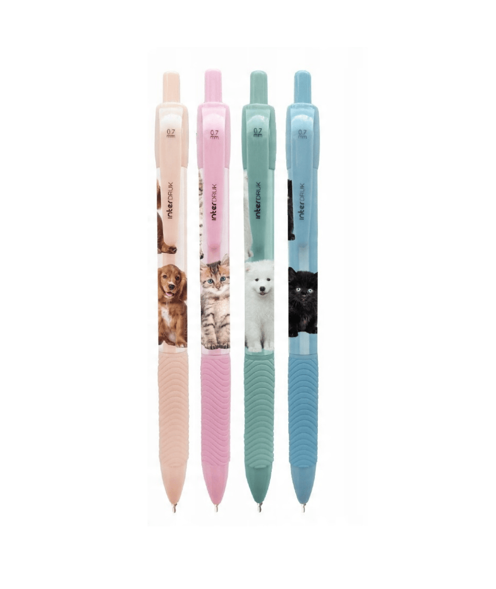 Urocze długopisy od Interdruk z najnowszej dziecięcej kolekcji PUPPY SIGN - urocze kotki i pieski. Długopis z gripem, który pozwala na wygodne pisanie. Do tego żelowo-olejowy tusz sprawia, że pisanie jest płynne i wyraźne.