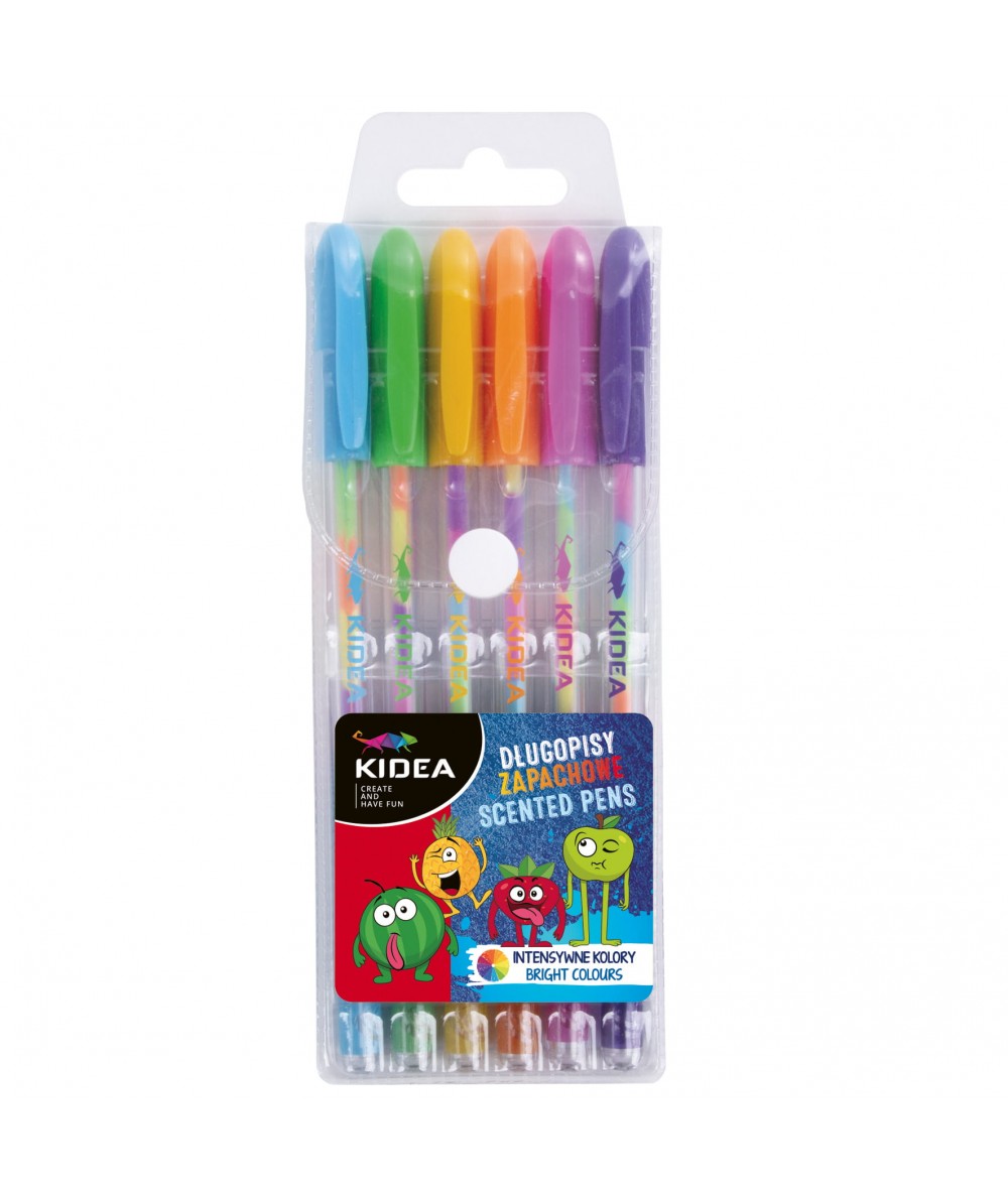 Długopisy żelowe ZAPACHOWE tęczowe 6 kolorów KIDEA