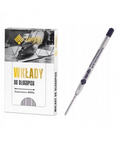 Jakościowy, mosiężny z powłoką niklową wkład wielkopojemny dedykowany do długopisów ZENITH ASTRA. Końcówka to kulka z węglika wolframu.