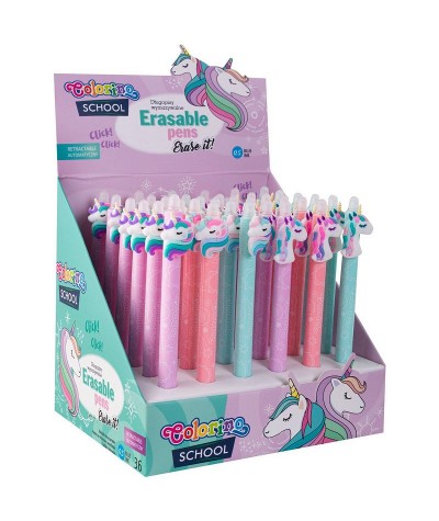 Długopis wymazywalny UNICORN jednorożce MIX 1szt. 0,5mm niebieski tusz 1szt. Colorino
