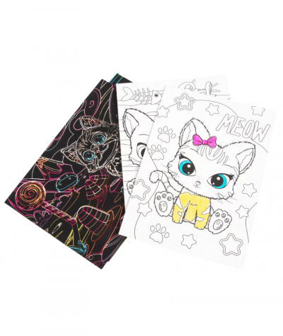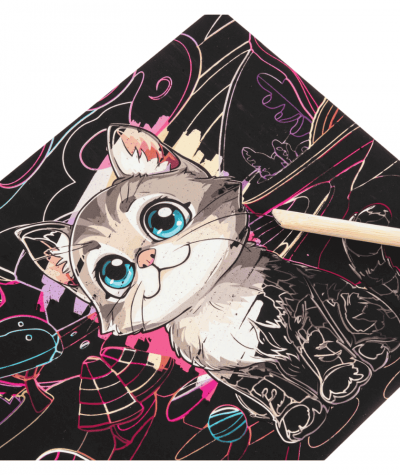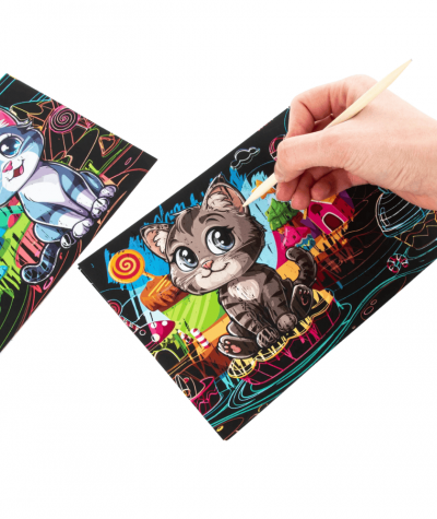Zanurz się w uroczy koci świat dzięki wydrapywance z kolorowanką KIDEA! W komplecie znajduje się 6 arkuszy z wesołymi kotkami do zdrapywania i kolorowania oraz specjalny rysik, który pozwoli odkryć ukryte, tęczowe ilustracje. To idealna zabawa dla małych miłośników zwierząt – rozwija wyobraźnię, cierpliwość i zdolności manualne.