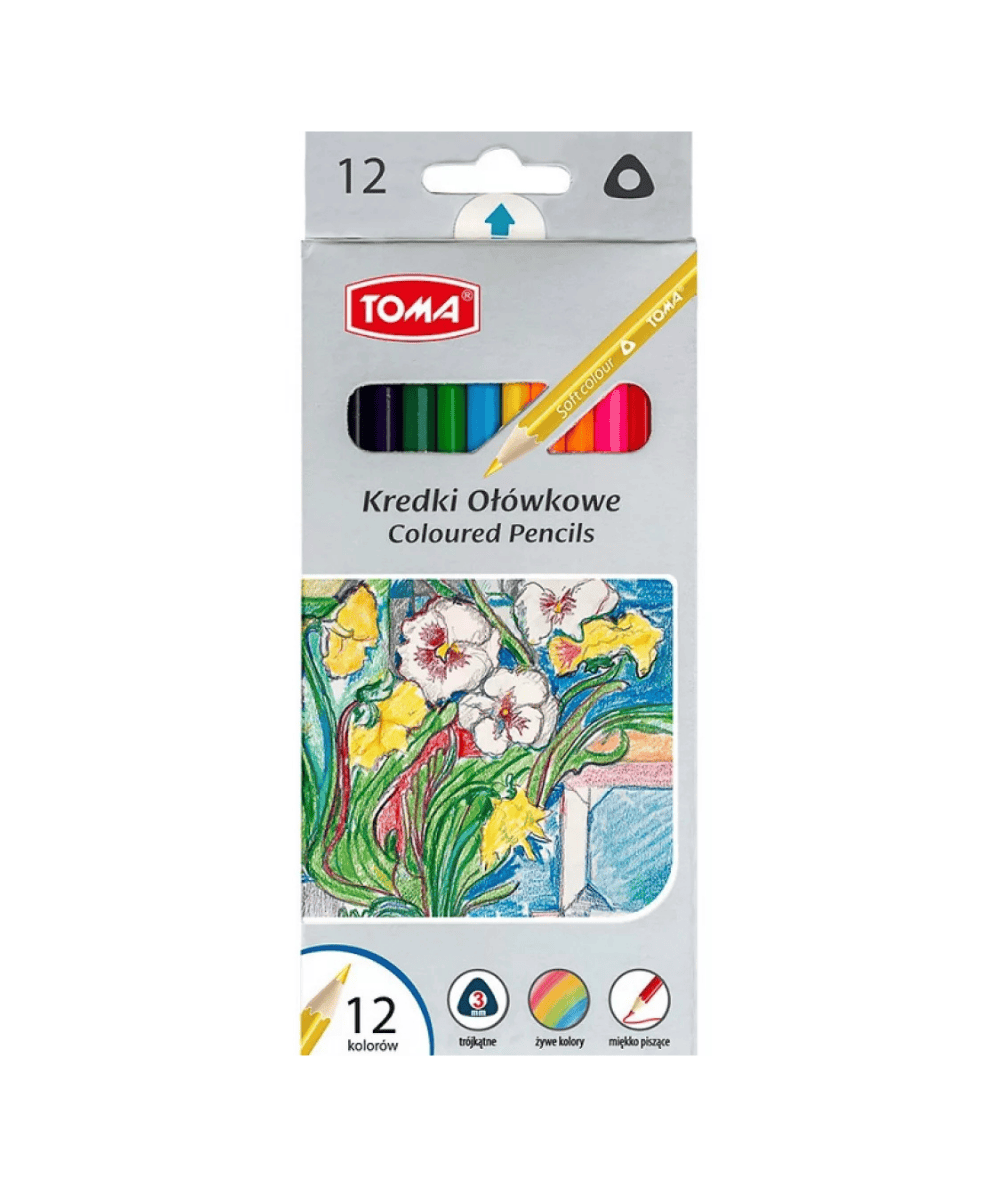 Kredki ołówkowe TOMA - trójkątne 12 żywych kolorów - miękkie