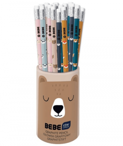 Idealne ołówki INTERDRUK dla dzieci! Kolekcja BEBE stworzona z myślą o najmłodszych z uroczymi zwierzakami. Ołówek zakończony gumką. Twardość HB.