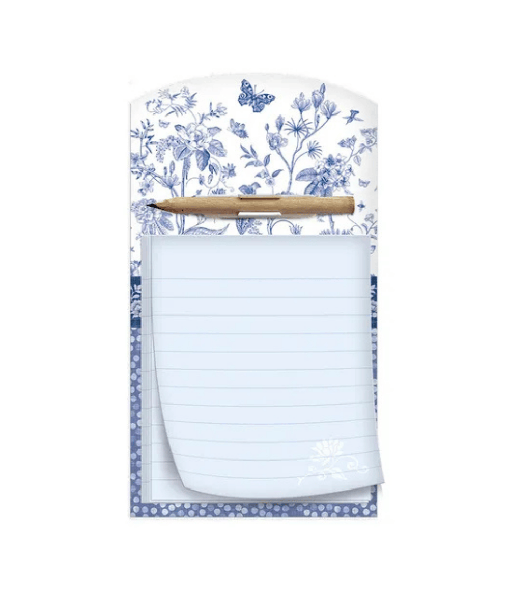 Subtelny i urokliwy – magnetyczny notes Bloom od Argus wprowadzi lekkość i świeżość do Twojej codzienności. Jasne, białe tło ozdobione niebieskimi kwiatami i motylami tworzy delikatny, przyjemny dla oka wzór. Dzięki mocnemu magnesowi łatwo przymocujesz go do lodówki, a dołączony ołówek sprawi, że zapiski zawsze będą pod ręką.