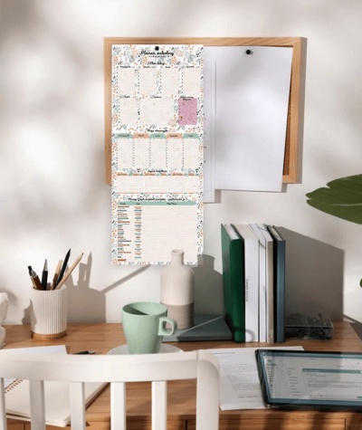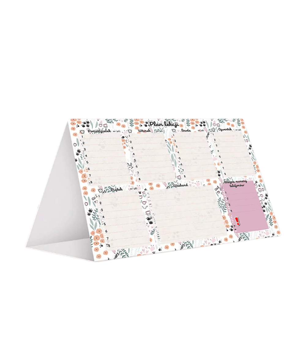 Planer tygodniowy HENRY w kwiatki KOT PATTERN - plan lekcji kalendarz na biurko dla dziewczynki
