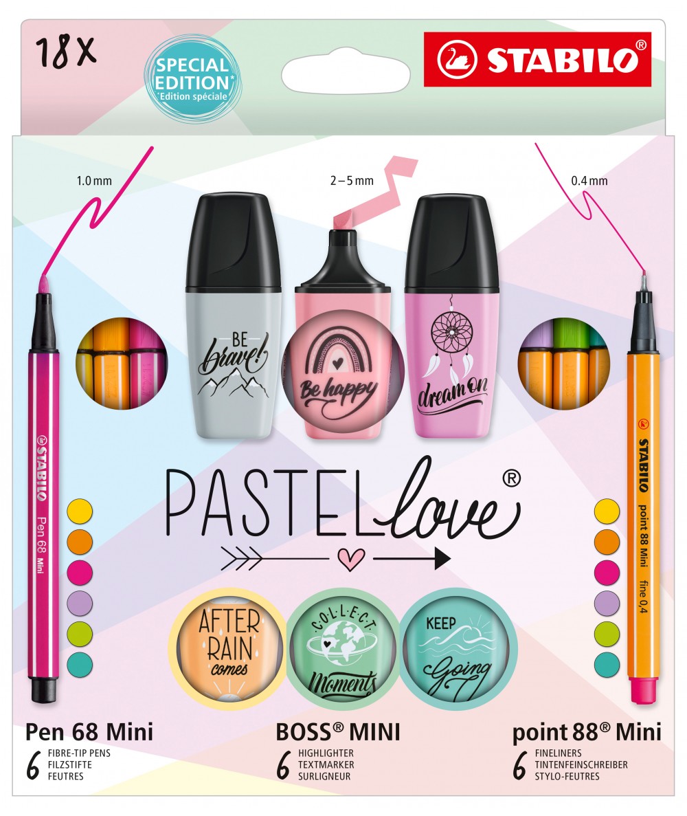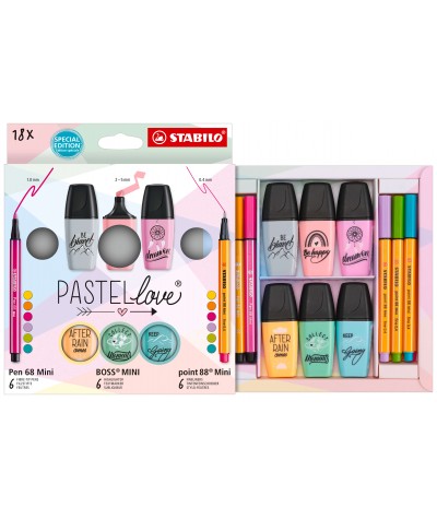 Pastelowy zestaw piśmienniczy od Stabilo PasteLove Boss Point MINI - 18 elem. zakreślacze cienkopisy
