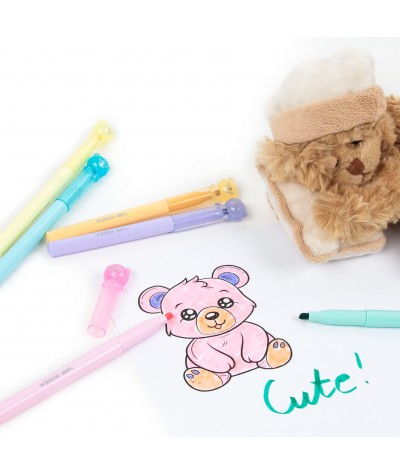 Flamastry dla dzieci MISIE - PASTELOWE KREMOWE - 6 kolorów KIDEA