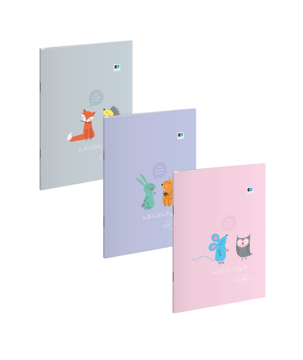 Pastelowy Zeszyt A4 32k. trzy linie kolorowe do nauki pisania INTERDRUK BEBE FRIENDS PASTEL 1szt.MIX