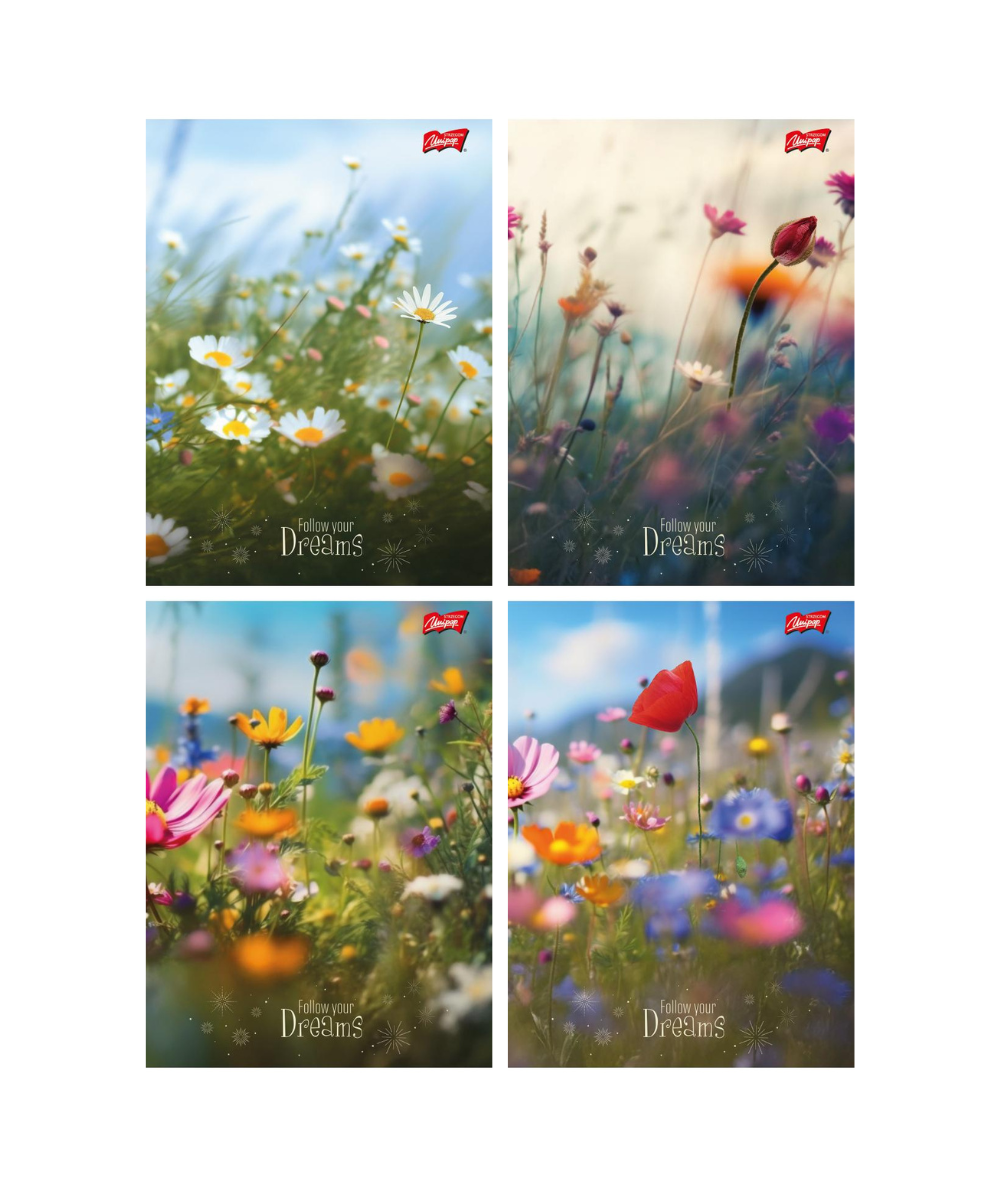 Zeszyt A5/60k. GRUBA LINIA w łąkę dziewczęcy ROMANTIC MEADOW - UNIPAP St. Majewski 1szt. MIX laminowany