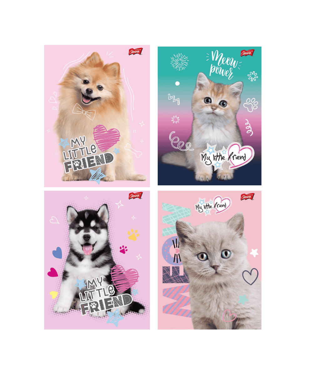 Zeszyt w trzy linie 16 kartkowy A5 - laminowany - MY LITTLE FRIEND KOTKI PIESKI St.Majewski 1szt. MIX