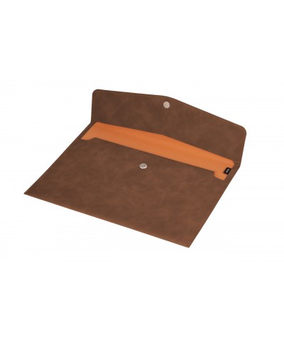 Teczka kopertówka A4 z nubuku ANTRA BRĄZOWA na zatrzask stylowa na dokumenty