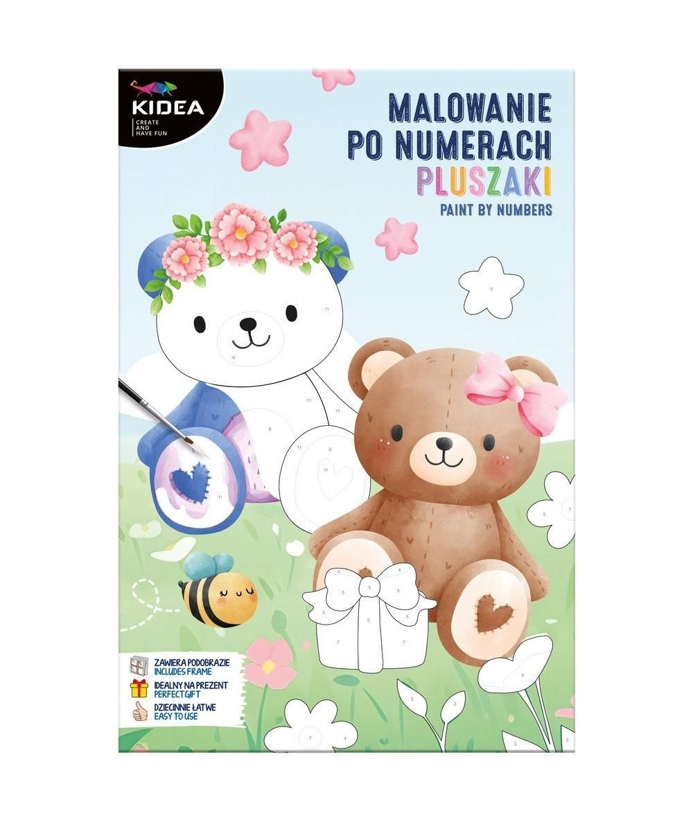 Malowanie po numerach dla dzieci PLUSZAKI KIDEA BEARS podobrazie + 12 farb z pędzelkiem