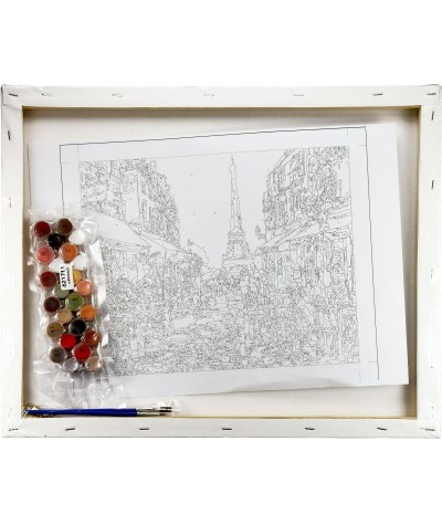 Stwórz malowniczy obraz Paryża z wieżą Eiffla w tle. Za pomocą numerków zamieszczonych na płótnie sam stworzysz obraz. Do zestawu dołączono farby akrylowe oraz pędzelki.