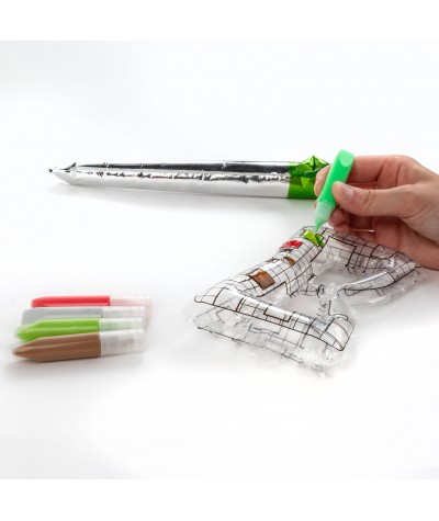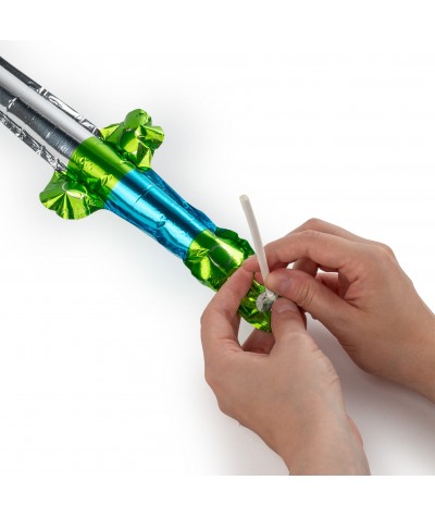 - Tak samo można nadmuchać miecz, który idealnie dopełni zabawę w rycerzy, bohaterów lub postacie z dziecięcej wyobraźni.