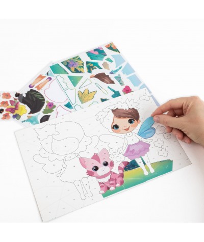 Wyklejanka po numerach KIDEA - MAGICZNY ŚWIAT MAGIC - łatwa w użyciu 4 arkusze z naklejkami